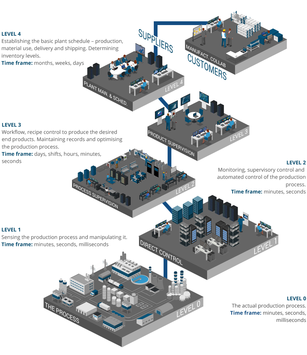 Customers require expert support on the critical infrastructure of OT systems which may include OS, Hardware, Software, DB, Network, and interconnected industrial applications. Our OT management services function on all layers of the Industrial Control Systems (ICS) Purdue model.
